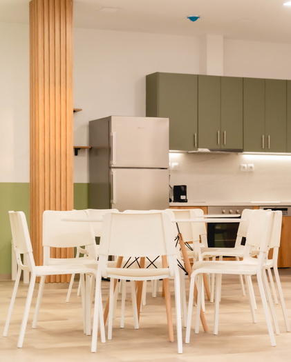 Φιλοξενία σε ένα ζεστό, ειδικά σχεδιασμένο, θεραπευτικό χώρο υψηλής αισθητικής που προάγει την ένταξη των ωφελούμενων στο ομαδικό πνεύμα.